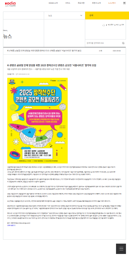 사단법인 한국디자인산업연합회(KODIA)에서 창작선수단 공모전의