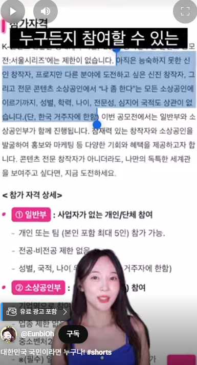 (인플루언서 응원) ASMR Eunzel 은젤 님의 창작선수단 응원 메시지